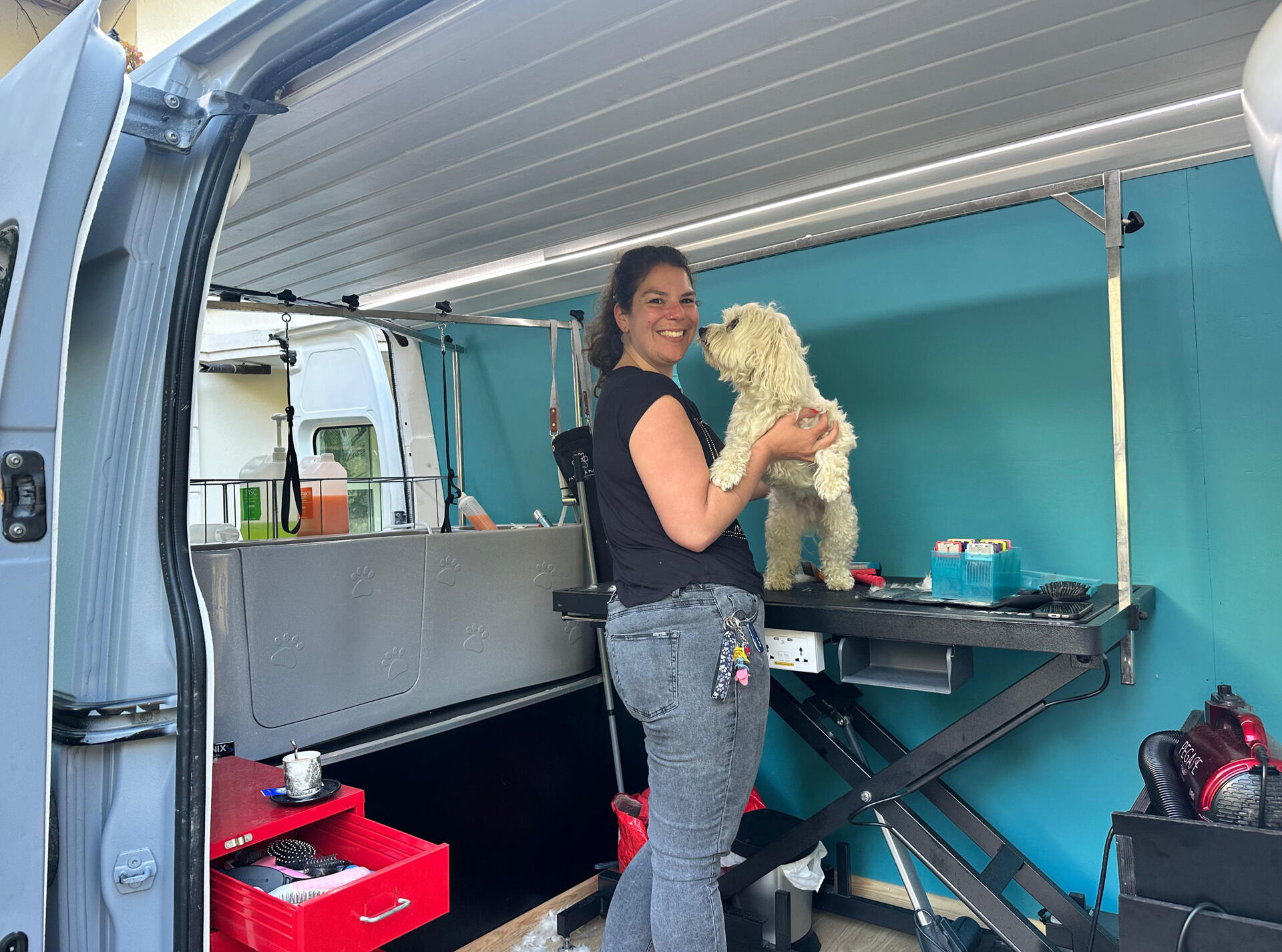 Toilettage à domicile, dans mon bus aménagé – pratique, confortable et sans stress pour vous et votre compagnon.